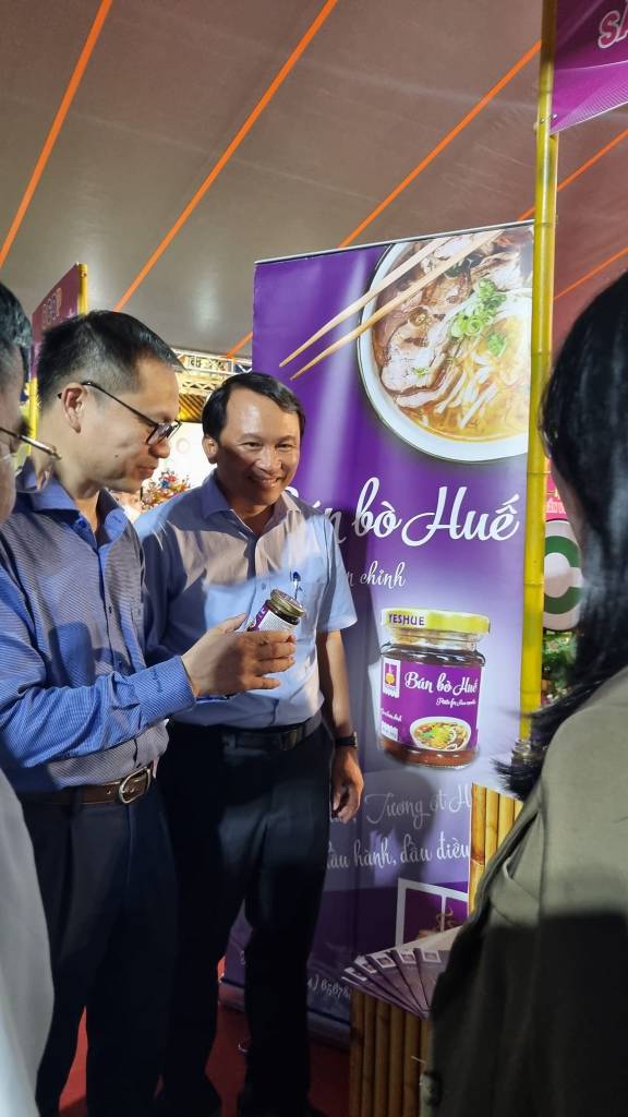 Không gian quảng bá, kết nối sản phẩm OCOP tại tỉnh Thừa Thiên Huế sẽ diễn ra từ ngày 29/9 đến hết ngày 01/10/2023 với sự tham gia của 40 đơn vị, doanh nghiệp, hợp tác xã đến từ Khánh Hòa, Quảng Nam, Bắc Ninh, Lạng Sơn, Thái Nguyên,…Các đơn vị tham gia sẽ trưng bày, giới thiệu nhiều mặt hàng đa dạng, phong phú. YesHue tại triển lãm đã thu hút rất nhiều du khách đến tham quan và mua sắm. Các khách hàng rất quan tâm đến các sản phẩm gia vị nấu các món truyền thống Việt Nam: Gia vị Bún bò Huế 150g, Gia vị Bún chay Huế 150g, Gia vị Phở 100g, Tương Ớt Huế 125g, Dầu điều phi, Dầu hành phi, Dầu tỏi phi 100g và Bún bò Huế 65g – Bữa ăn tiện lợi chuẩn nhà hàng.