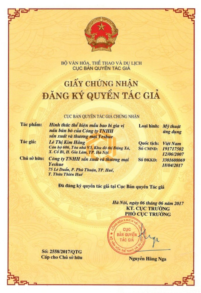 - Số công bố sản phẩm: 08/YESHUE/2018