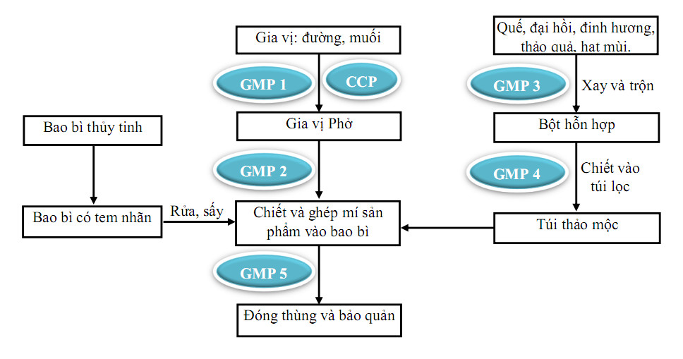 - Quế, đại hồi, đinh hương, thảo quả, hạt mùi, muối, đường, dầu thực vật, nước mắm, E621.