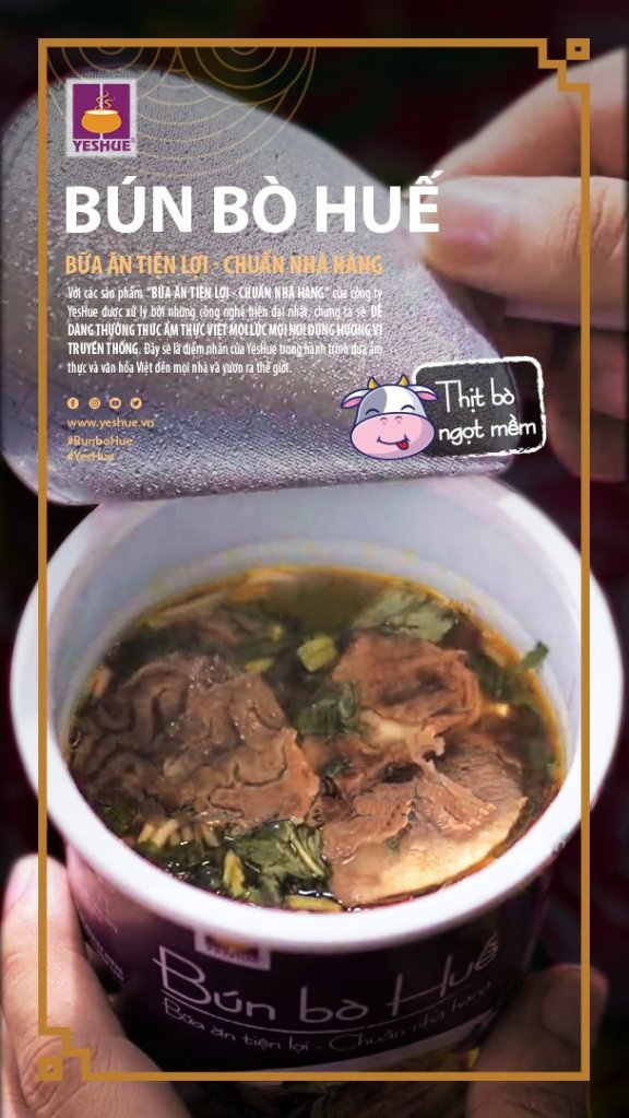 Với các sản phẩm “BỮA ĂN TIỆN LỢI – CHUẨN NHÀ HÀNG ” của công ty YesHue được xử lý bởi những công nghệ hiện đại nhất , chúng ta sẽ DỂ DÀNG THƯỞNG THỨC ẨM THỰC VIỆT MỌI LÚC MỌI NƠI ĐÚNG HƯƠNG VỊ TRUYỀN THỐNG. Đây sẽ là điểm nhấn của YesHue trong hành trình đưa ẩm thức và văn hóa Việt đến mọi nhà và vươn ra thế giới.